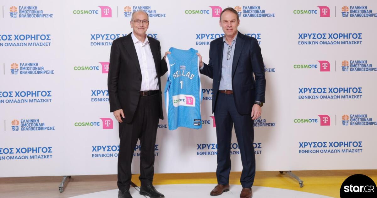Χρυσός Χορηγός των Εθνικών Ομάδων Μπάσκετ (Ανδρών, Γυναικών και Νεών – U20, U18, U16) μέχρι και το 2030 θα είναι η COSMOTE TELEKOM, η οποία αναλαμβάνει και Επίσημος Χορηγός της Ελληνικής Ομοσπονδίας Καλαθοσφαίρισης (ΕΟΚ). Ως Χρυσός Χορηγός των Εθνικών Ομάδων Μπάσκετ η COSMOTE TELEKOM θα προβάλλεται στο μπροστινό μέρος της αγωνιστικής φανέλας.