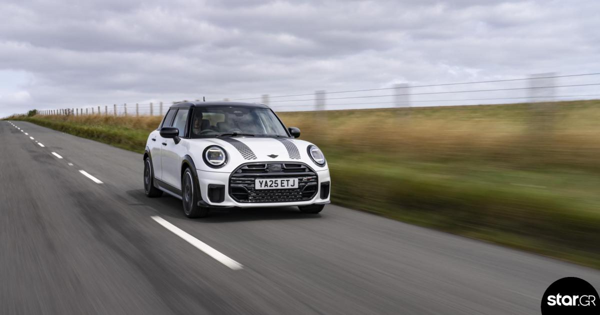 Οι λεπτομέρειες εξοπλισμού της έκδοσης John Cooper Works —όπως οι χαρακτηριστικοί διαχύτες εμπρός και πίσω, η οκταγωνική μάσκα σε γυαλιστερό μαύρο και οι αποκλειστικές ζάντες— παραπέμπουν ξεκάθαρα στο αγωνιστικό DNA της μάρκας και διαμορφώνουν μια αδιαμφισβήτητα σπορ εμφάνιση.