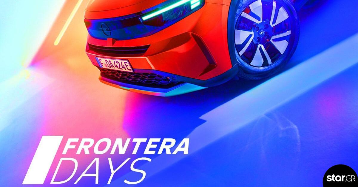 Η Opel Βελμάρ καλωσορίζει το ολοκαίνουργιο Opel Frontera στα FRONTERA DAYS, από τις 10 έως τις 19 Οκτωβρίου, στις εκθέσεις Βελμάρ στην Αθήνα και την Κρήτη.Η Opel Βελμάρ προσκαλεί τους λάτρεις των 4 τροχών να γνωρίσουν από κοντά και να οδηγήσουν το ολοκαίνουργιο Opel Frontera σε ένα δεκαήμερο αποκλειστικά αφιερωμένο στο πιο σύγχρονο και ευέλικτο μοντέλο της χρονιάς.
