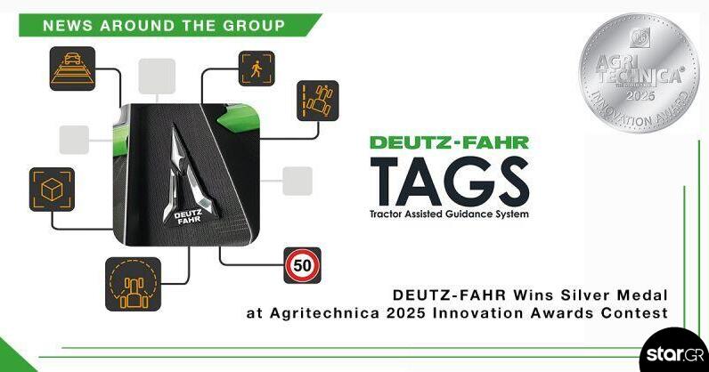 Το TAGS (Tractor Assisted Guidance System) θέτει νέα πρότυπα στην αυτοματοποίηση και την ασφάλεια των γεωργικών μηχανημάτων. Η DEUTZ-FAHR διακρίθηκε με το Ασημένιο Μετάλλιο στην Agritechnica 2025, για το καινοτόμο TAGS (Tractor Assisted Guidance System) – ένα αποφασιστικό βήμα προόδου προς την αυτοματοποίηση και την ασφάλεια τόσο στο δρόμο όσο και στο χωράφι. Το βραβευμένο σύστημα εισάγει προηγμένες τεχνολογίες υποβοήθησης οδηγού, ειδικά προσαρμοσμένες στις απαιτήσεις της γεωργικής εργασίας.