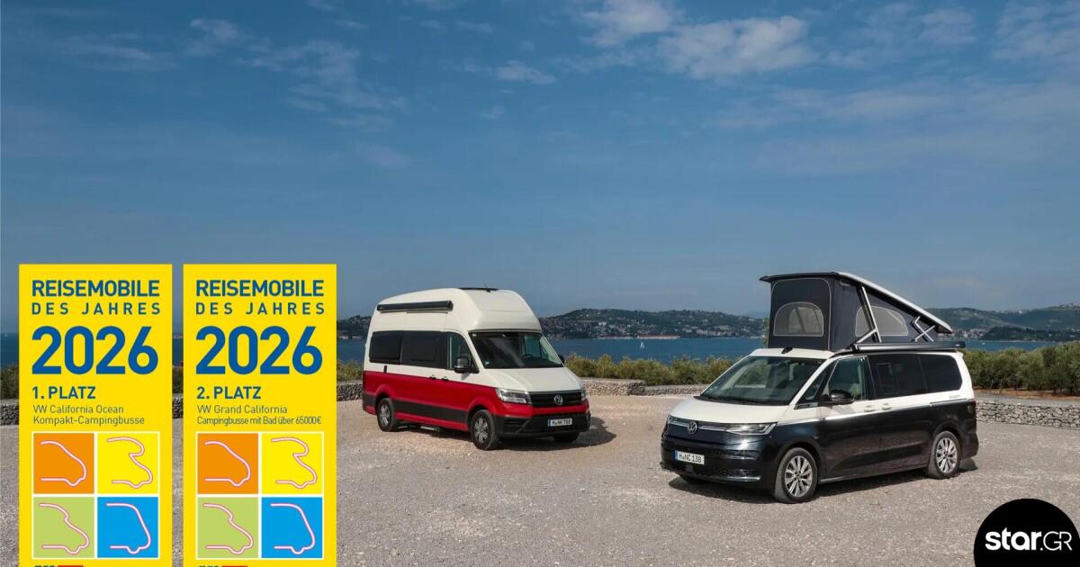 Η Volkswagen Επαγγελματικά Οχήματα κατέκτησε διπλή σημαντική διάκριση στα βραβεία Motorhomes of the Year 2026, έναν από τους πλέον αναγνωρισμένους θεσμούς στον χώρο των αυτοκινούμενων οχημάτων στην Ευρώπη, όπως προκύπτει από την ψηφοφορία των αναγνωστών του περιοδικού promobil.