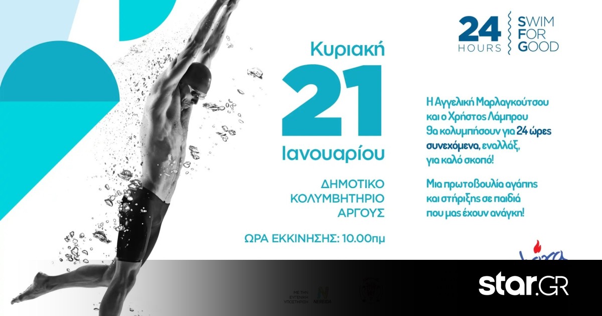 Η Αγγελική Μαρλαγκούτσου και ο Χρήστος Λάμπρου θα κολυμπήσουν συνεχόμενα, εναλλάξ, για 24 ώρες, στο Δημοτικό Κολυμβητήριο Άργους, για καλό σκοπό!