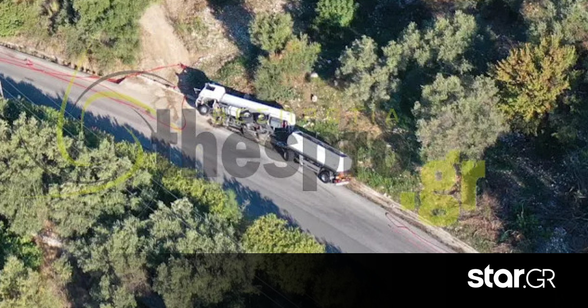 Εικόνες από τη σημείο της ανατροπής του βυτιοφόρου /
