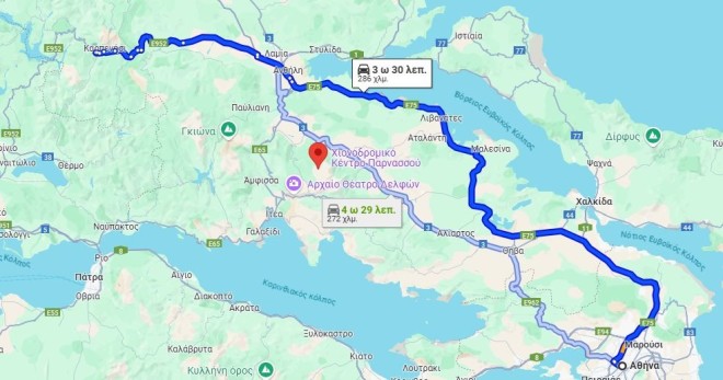 Αθήνα - Καρπενήσι: 295 χλμ.