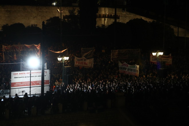 Λίγο μετά τις 6 το απόγευμα, στο Σύνταγμα άρχισαν να συρρέουν οι πρώτοι διαδηλωτές, ενώ βρίσκεται σε εξέλιξη στη Βουλή η συζήτηση για την πρόταση μομφής κατά της κυβέρνησης.