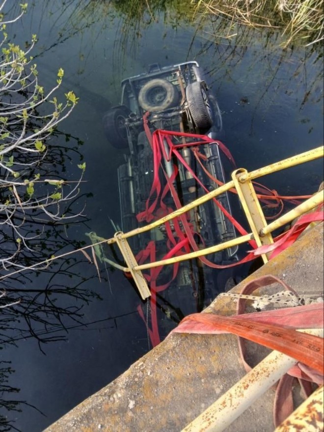 Το μαύρο όχημα έπεσε στο κανάλι, ενώ τραυματίστηκε και ένας ψαράς που εκείνη την ώρα ήταν πάνω στη γέφυρα.