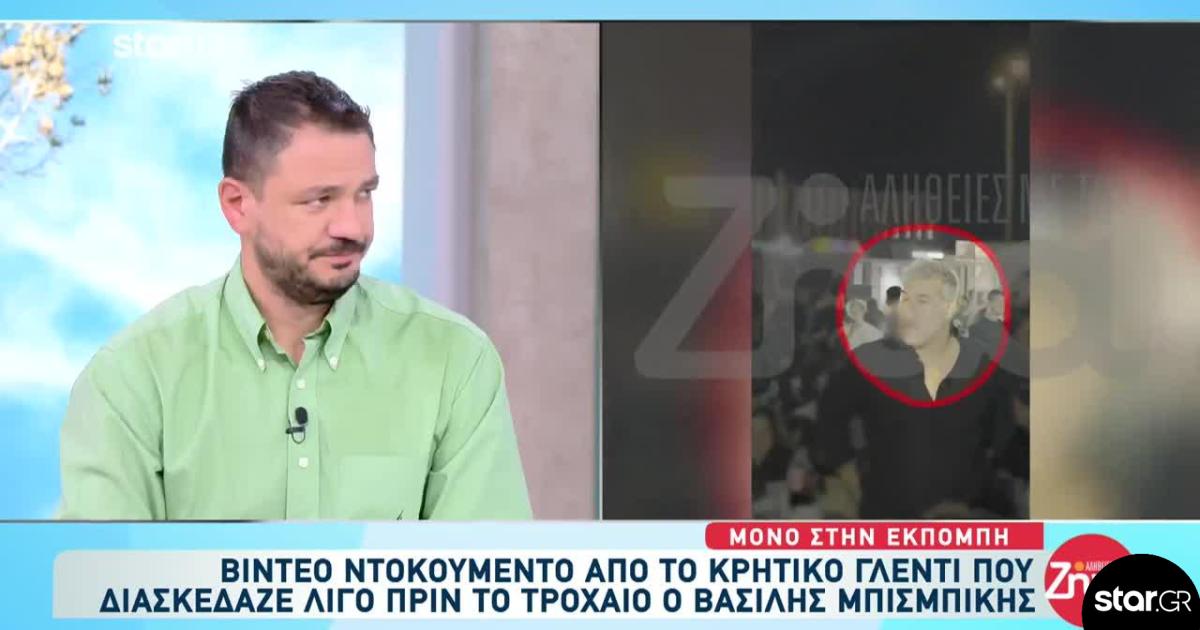 Σε κρητικό γλέντι που τραγουδούσε ο δημοφιλής Κρητικός τραγουδιστής Γρηγόρης Σαμόλης στη Μεταμόρφωση, διασκέδαζε ο Βασίλης Μπισμπίκης το βράδυ της Παρασκευής, λίγες ώρες πριν πέσει με το αυτοκίνητό του σε σταθμευμένα αυτοκίνητα στη Φιλοθέη και εγκαταλείψει το σημείο.