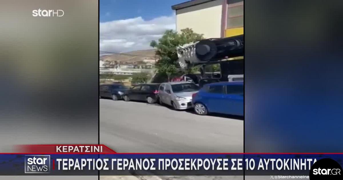 Κερατσίνι: Γερανός έπεσε σε 10 παρκαρισμένα οχήματα έξω από το κολυμβητήριο