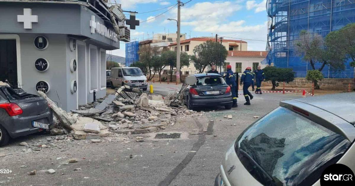 Βομβαρδισμένο τοπίο στο Λαύριο από μπαλκόνι: Κατέρρευσε πάνω σε αυτοκίνητα - Τραυματίστηκε γυναίκα / MEGA