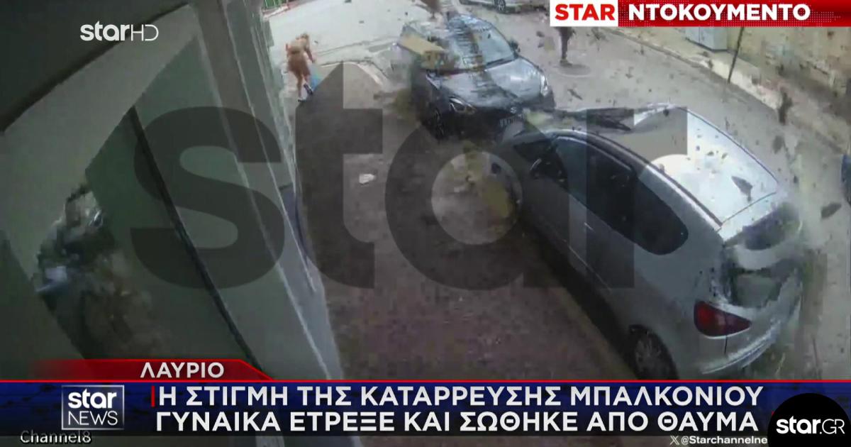 Συγκλονιστικό βίντεο ντοκουμέντο φέρνει στο φως της δημοσιότητας το Star, από τη στιγμή της κατάρρευσης του μπαλκονιού στο Λαύριο.