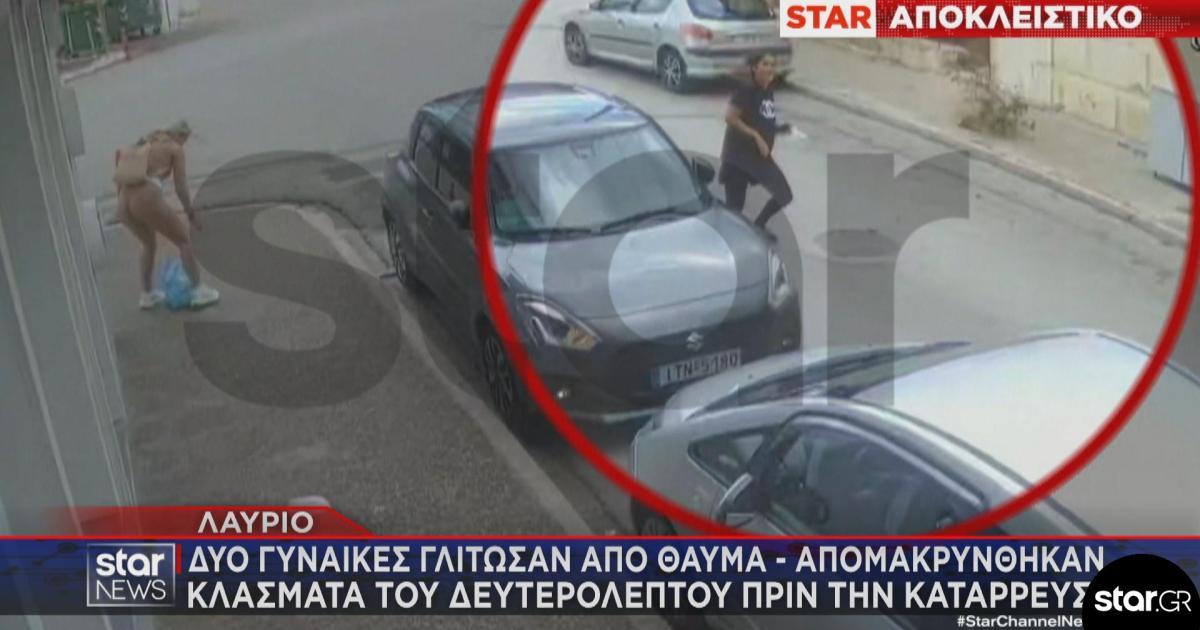 Λαύριο: Δύο γυναίκες γλίτωσαν από θαύμα - Απομακρύνθηκαν κλάσματα του δευτερολέπτου πριν την κατάρρευση