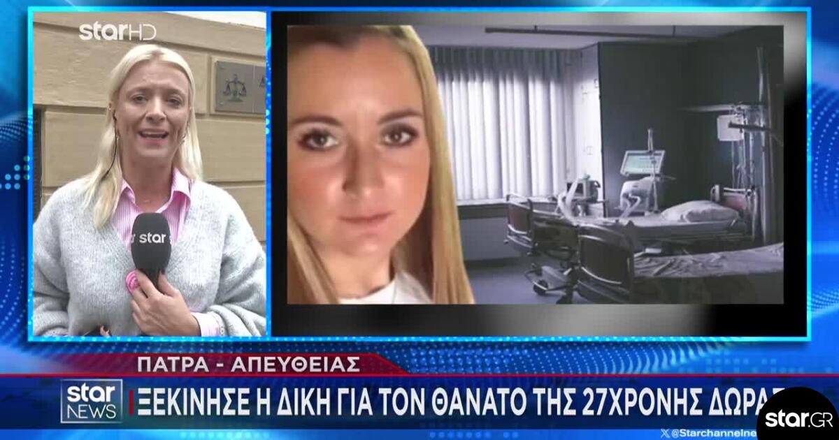Ξεκίνησε σήμερα η δίκη για τον θάνατο της 27χρονης Δώρας που γέννησε ένα αγοράκι και μετά από λίγες ημέρες κατέληξε στη ΜΕΘ του Πανεπιστημιακού Νοσοκομείου των Πατρών. Στο εδώλιο για ανθρωποκτονία εξ αμελίας κάθονται μία αναισθησιολόγος και ένας νοσηλευτής.