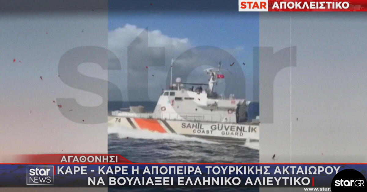 Συνεχίζουν τις προκλήσεις τους οι Τούρκοι στο ανατολικό Αιγαίο. Καπετάνιος ελληνικού αλιευτικού καταγγέλλει στο STAR πως τουρκική ακταιωρός, μόλις δύο ναυτικά μίλια από το Αγαθονήσι, με επικίνδυνους ελιγμούς επιχείρησε να βουλιάξει το σκάφος του. Αδιάψευστος μάρτυρας είναι το οπτικό υλικό που εξασφάλισε αποκλειστικά ο Γιάννης Σωτηρόπουλος.