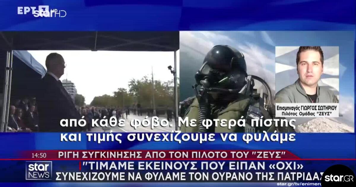 Με λόγια που άγγιξαν τις καρδιές όλων, ο επισμηναγός Γεώργιος Σωτηρίου εντυπωσίασε με το μαχητικό F-16 της Ομάδας Επιδείξεων «ΖΕΥΣ», στις αεροπορικές επιδείξεις για την επέτειο της 28ης Οκτωβρίου στη Θεσσαλονίκη.