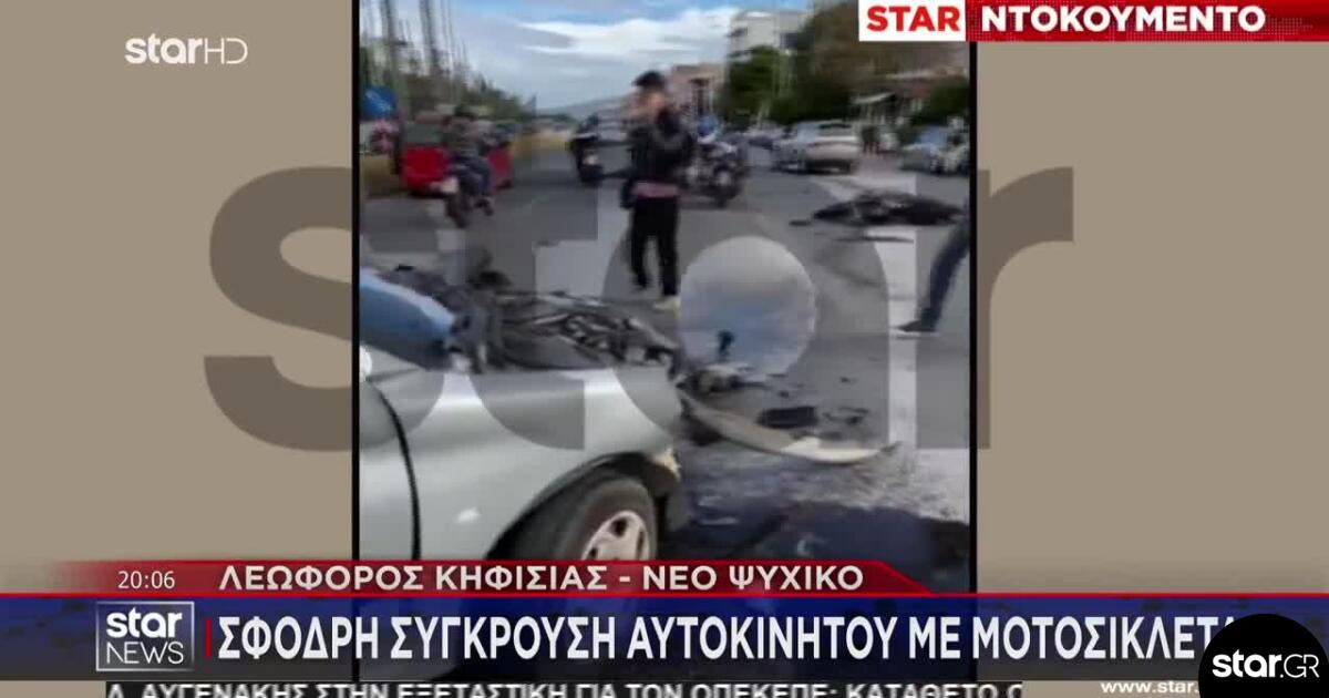 Λεωφόρος Κηφισίας - Νέο Ψυχικό: Σφοδρή σύγκρουση αυτοκινήτου με μοτοσικλέτα