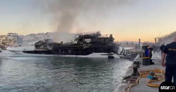 Κατεστραμμένο σκάφος που πήρε φωτιά στη Μαρίνα Ζέας