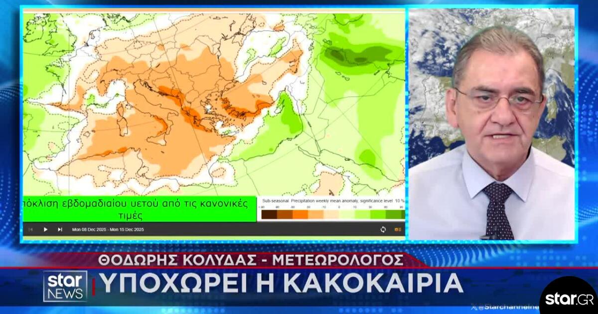 «Ο βαρύς καιρός κρατά μέχρι σήμερα το μεσημέρι. Ουσιαστικά από τη Δευτέρα προς Τρίτη και μετά, σταματάνε οι βροχές στη χώρα», επισήμανε ο μετεωρολόγος και διευθυντής της ΕΜΥ, Θοδωρής Κολυδάς στο μεσημεριανό δελτίο ειδήσεων του Star.