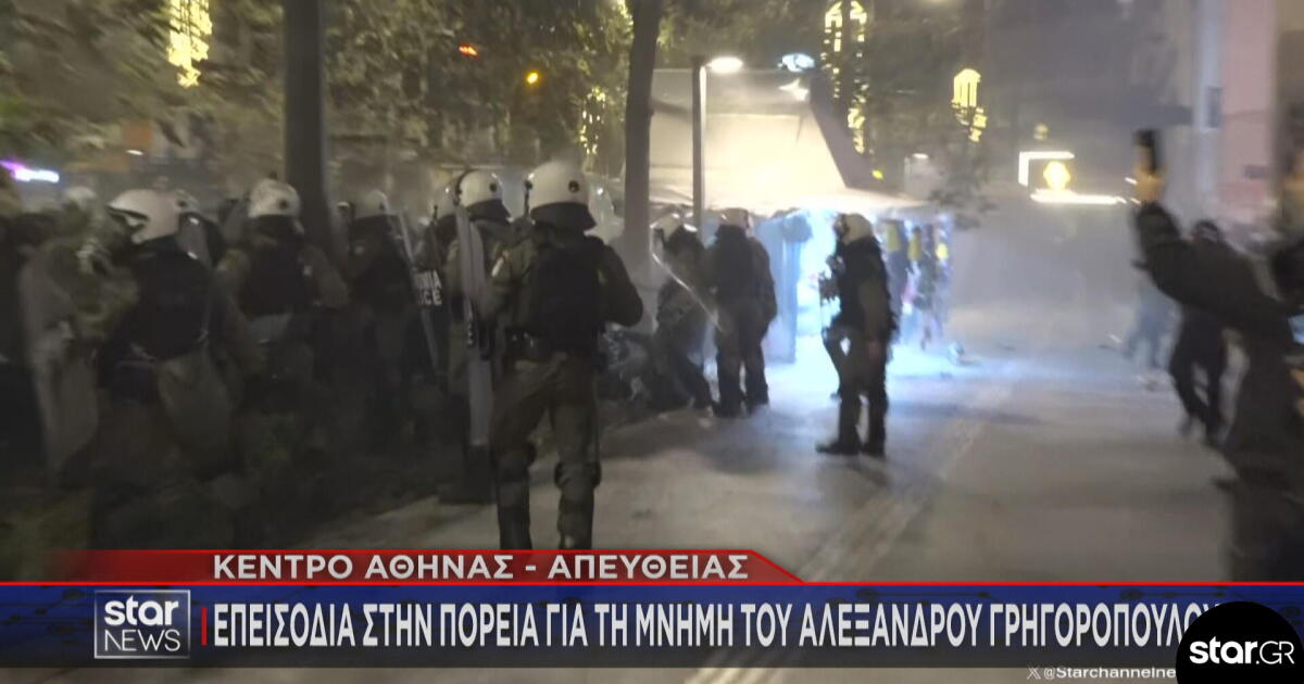 «Ξαφνικά είδαμε κρότου λάμψης, δακρυγόνα και μάχες σώμα με σώμα. Είχαμε πολλές συλλήψεις. Η πορεία σε αυτό το σημείο θα διαλυόταν. Ξαφνικά επικράτησε το χάος», μετέδωσε ο Άρης Λάμπος στο κεντρικό δελτίο ειδήσεων του Star.