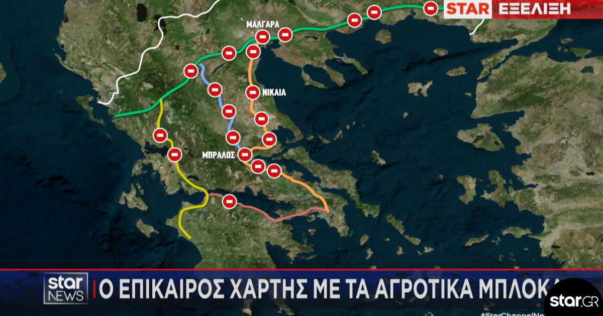 Η Βαλεντίνα Καραγεωργίου και το τμήμα γραφικών του Star, παρουσίασε στο κεντρικό δελτίο ειδήσεων με τη Μάρα Ζαχαρέα τον οδικό χάρτη της χώρας και τα αγροτικά μπλόκα που δυσχεραίνουν την κυκλοφορία στις βασικές οδικές αρτηρίες.