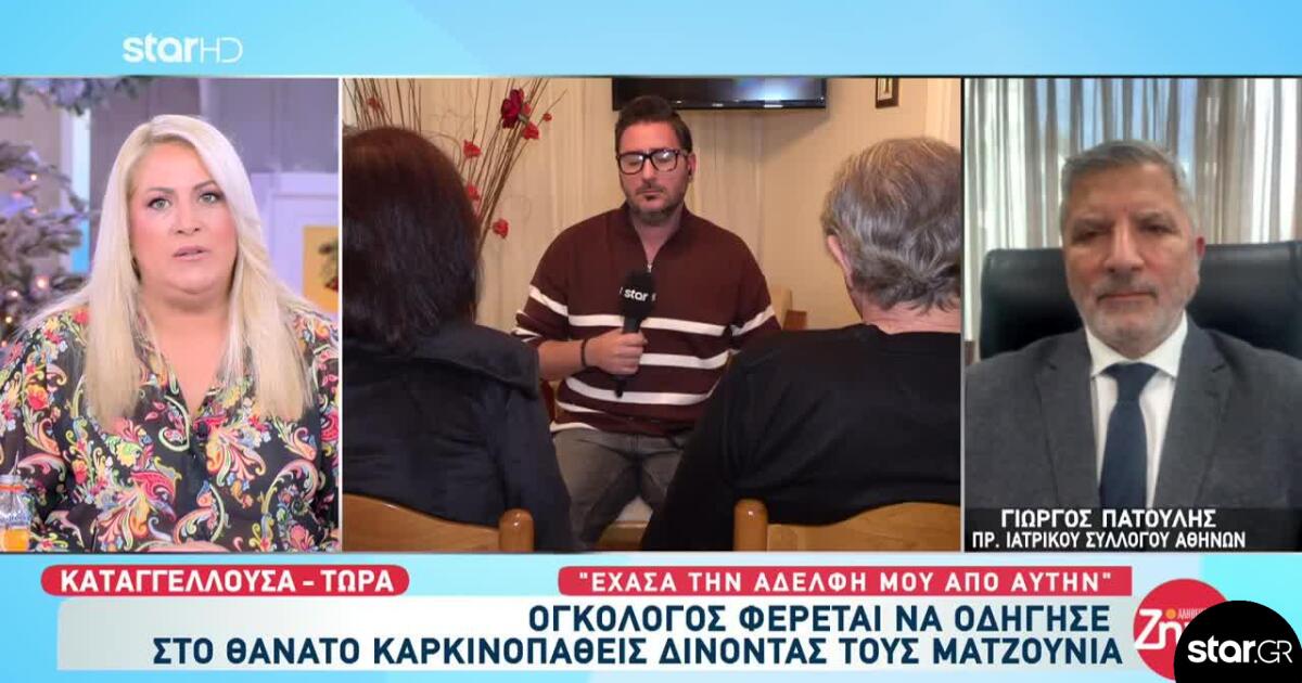 «Θέλω να πω κάτι, επειδή για μένα σήμερα είναι μια πολύ ιδιαίτερη μέρα. Σαν σήμερα, πριν τέσσερα χρόνια, μπήκα στο νοσοκομείο για καρκίνο του μαστού για να εγχειριστώ», είπε η Ρούλα Κουσκουρή, με αφορμή την υπόθεση του ογκολόγου που οδήγησε στον θάνατο καρκινοπαθείς, αφού τους σύστηνε ματζούνια, αντί για χημειοθεραπείες.