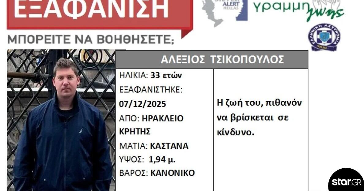 Ο νεαρός ωτορινολαρυγγολόγος, ειδικευόμενος στο Βενιζέλειο Νοσοκομείο Ηρακλείου, αγνοείται από το πρωί της περασμένης Κυριακής, όταν χάθηκαν τα ίχνη του. Η εξαφάνισή του δηλώθηκε επίσημα από τους γονείς του, οι οποίοι διαμένουν εκτός Κρήτης και ανησύχησαν όταν δεν κατάφεραν να επικοινωνήσουν μαζί του, παρά τις επανειλημμένες προσπάθειες.