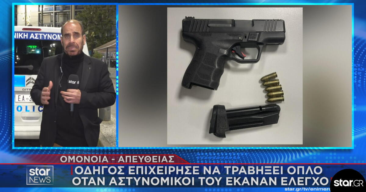 Ένας οδηγός αυτοκινήτου προσπάθησε να βγάλει όπλο σε αστυνομικούς της ομάδας ΔΙΑΣ που τον σταμάτησαν για να του κάνουν έλεγχο το βράδυ των Χριστουγέννων, στην Ομόνοια. Πρόκειται για έναν Τούρκο που συνελήφθη και οδηγήθηκε στον Εισαγγελέα.