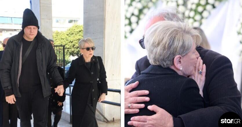 Η Έλενα Ακρίτα έφτασε στο νεκροταφείο εμφανώς συγκλονισμένη, έχοντας στο πλευρό της τον γιο της, Παύλο Αρζόγλου, καθώς και τον σύζυγό της, Γιώργο Κυρίτση.