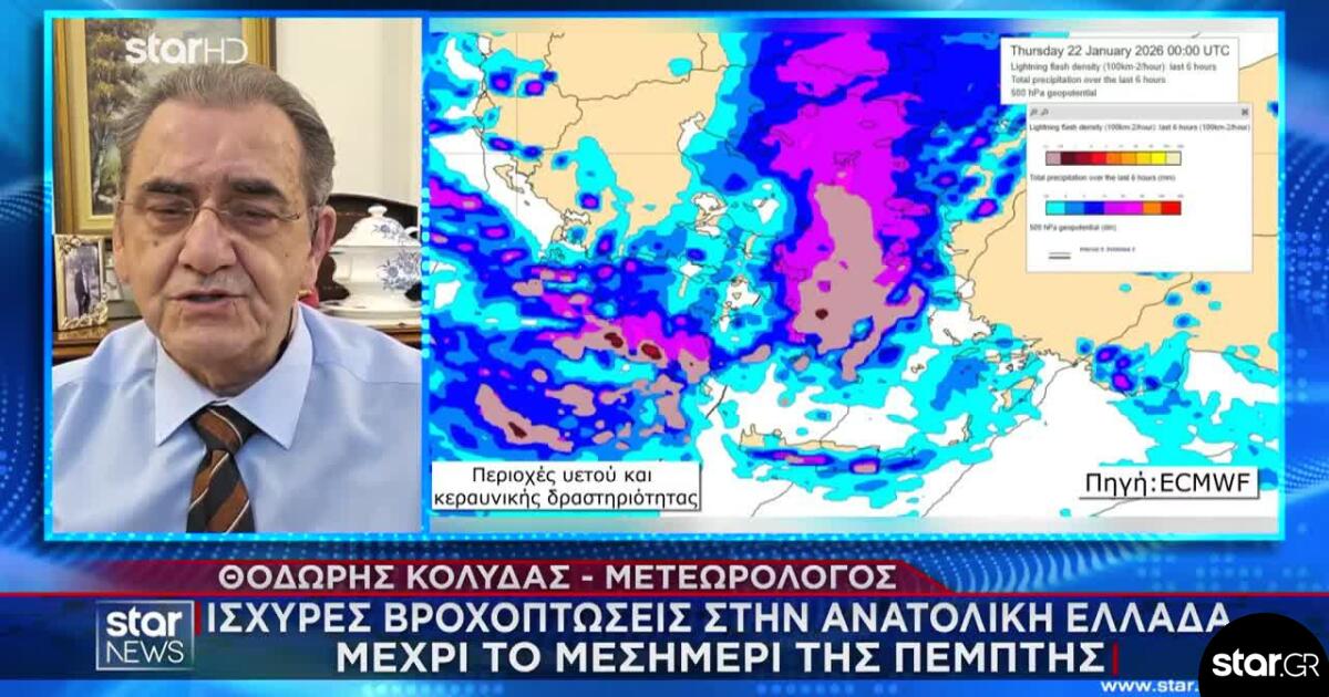 Καιρός: Πώς θα κινηθεί η κακοκαιρία ανά 6ωρο – Τι λέει ο Θοδωρής Κολυδάς