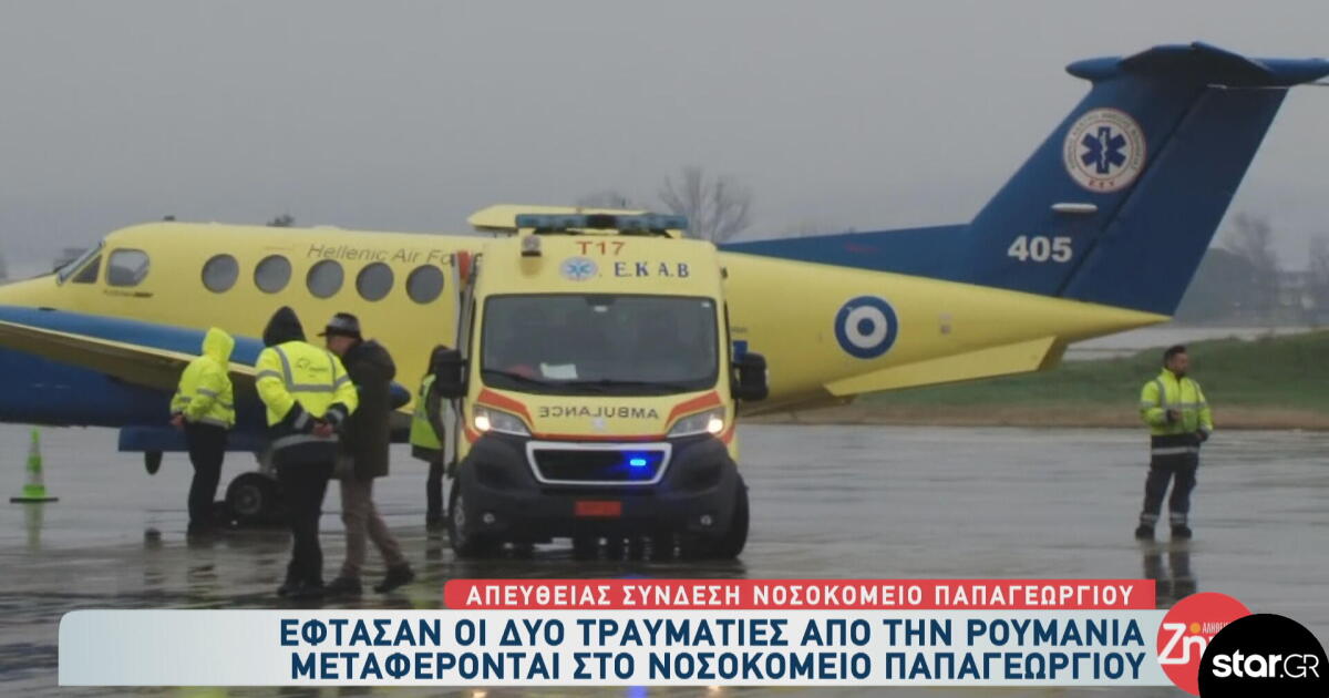 Το αεροσκάφος του ΕΚΑΒ που μεταφέρει τους δύο τραυματίες οπαδούς του ΠΑΟΚ, που ενεπλάκησαν στο πολύνεκρο τροχαίο δυστύχημα στη Ρουμανία, προσγειώθηκε λίγο μετά τις 13:00 στη Θεσσαλονίκη.