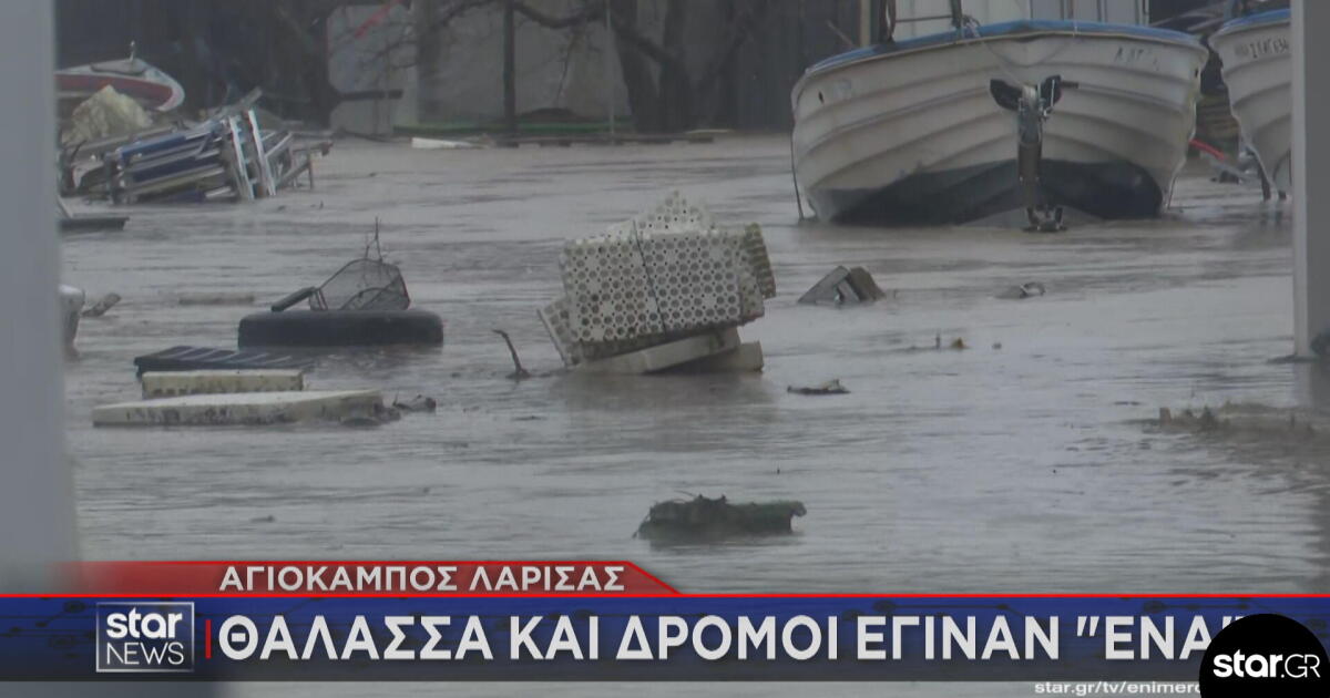 Η θάλασσα βγήκε στον δρόμο και στα σπίτια στον Αγιόκαμπο Λάρισας (φωτογραφίες larisanet.gr)