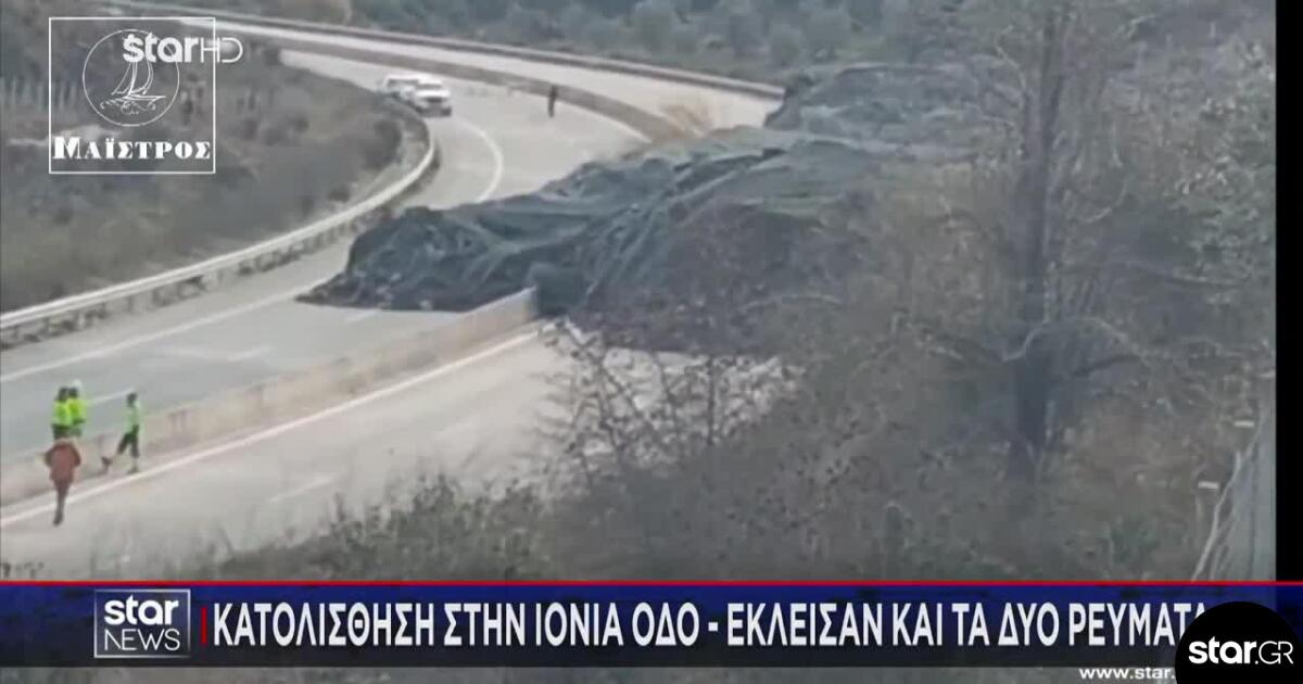 Σοβαρό πρόβλημα έχει προκύψει από νωρίς το πρωί σήμερα (2/2) στην Ιόνια Οδό, καθώς κατολίσθηση οδήγησε στο κλείσιμο του αυτοκινητοδρόμου και στα δύο ρεύματα κυκλοφορίας, από την Άρτα έως την Αμφιλοχία ενώ ολόκληρο το βουνό έχει μετακινηθεί, κλείνοντας τον δρόμο.