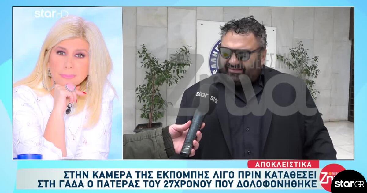 Για πρώτη φορά εμφανίζεται δημόσια στις κάμερες ο πατέρας του 27χρονου από τη Νέα Πέραμο, ο οποίος κατέθεσε σήμερα στη ΓΑΔΑ για την υπόθεση της δολοφονίας του γιου του.