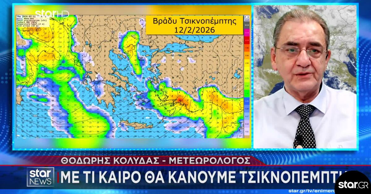 Συγκεκριμένα, όπως είπε ο κ. Κολυδάς στο μεσημεριανό δελτίο ειδήσεων του Star, τις βραδινές ώρες της Τσικνοπέμπτης ο καιρός δε θα δημιουργήσει ιδιαίτερα προβλήματα στην ανατολική Ελλάδα. Βροχές αναμένονται στα Δωδεκάνησα και στη δυτική χώρα που θα δυναμώσουν κατά τη διάρκεια της νύχτας.