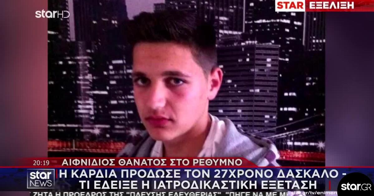 Προδομένος από την καρδιά του έφυγε, σύμφωνα με πληροφορίες, ο 27χρονος δάσκαλος από τον Τύρναβο που δίδασκε στο Ρέθυμνο. Η ιατροδικαστική εξέταση ολοκληρώθηκε και η δικαστική συντάκτρια του Star, Άννα Σταματιάδου έχει το ρεπορτάζ.