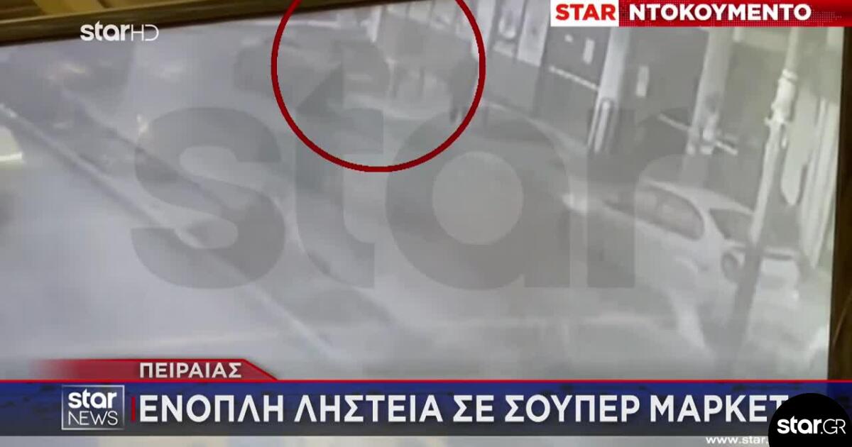 Στις εικόνες από βίντεο ντοκουμέντο που παρουσίασε στο Μεσημεριανό Δελτίο Ειδήσεων του Star ο Αλέξανδρος Γύγος έχει καταγραφεί η ληστεία μόλις 20 λεπτά αφού άνοιξε το σούπερ μάρκετ που βρίσκεται σε κεντρικό δρόμο επί της Θηβών στον Πειραιά.