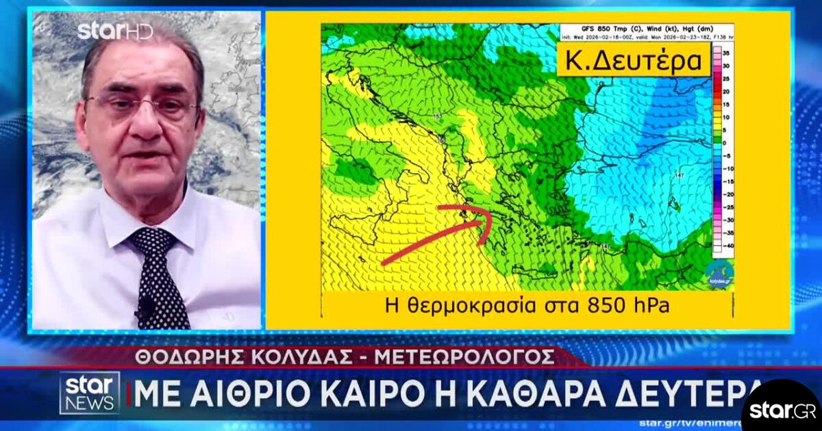 «Μέσα στην Κυριακή, το σύστημα αυτό θα υποχωρήσει, θα βελτιωθεί ο καιρός. Θα επικρατήσει γενικά κρύο την Κυριακή με τη θερμοκρασία στους 13-14 βαθμούς. Όμως όλα τα στοιχεία είναι ευνοϊκά για την Καθαρά Δευτέρα. Θα έχουμε ηλιοφάνεια σε όλη τη χώρα. Η θερμοκρασία θα αρχίσει να ανεβαίνει από τα δυτικά την Καθαρά Δευτέρα και με ενδεικτική θερμοκρασία θα έλεγα γύρω στους 15 περίπου βαθμούς Κελσίου για την Αθήνα», είπε αναφερόμενος στον καιρό της Καθαρά Δευτέρας.