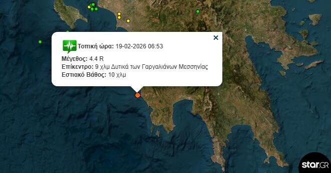 Η σεισμική δόνηση καταγράφηκε στα Φιλιατρά στη Μεσσηνία, σύμφωνα με το Γεωδυναμικό Ινστιτούτο. Το επίκεντρο του σεισμού εντοπίζεται 9 χιλιόμετρα δυτικά των Γαργαλιάνων, ενώ το εστιακό βάθος υπολογίζεται στα 11,4 χιλιόμετρα.