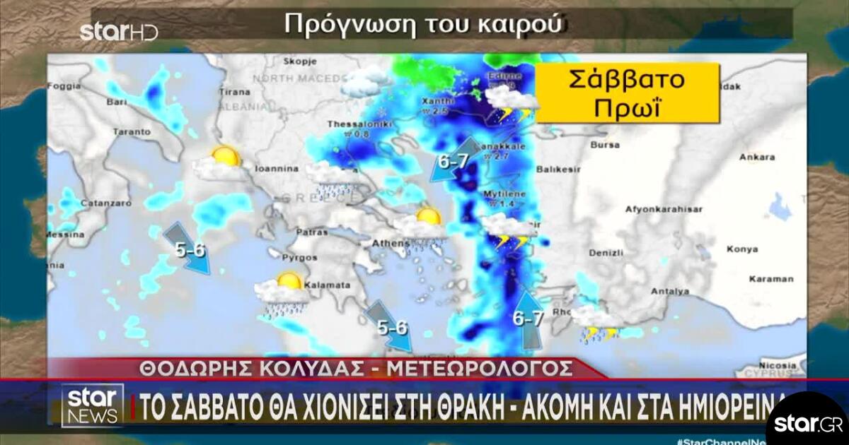 Στη συνέχεια της πρόγνωσής του τόνισε ότι το Σάββατο χρειάζεται ιδιαίτερη προσοχή στα ανατολικά, καθώς αναμένονται πυκνές χιονοπτώσεις στη Θράκη και τα ημιορεινά.