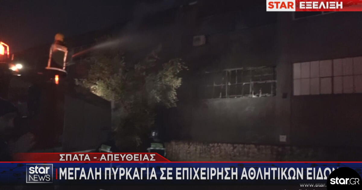 Μεγάλη φωτιά σε αποθήκη επιχείρησης αθλητικών ειδών στα Σπάτα