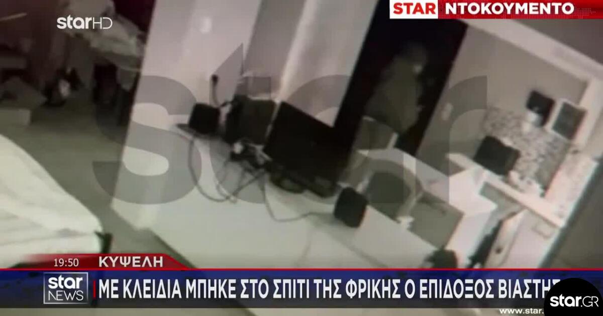Ο επίδοξος βιαστής μπήκε στο σπίτι της φρίκης σαν να μπαίνει στο δικό του. Κανονικά, με κλειδιά. Στο ντοκουμέντο που έχει εξασφαλίσει αποκλειστικά ο Βαγγέλης Γκούμας, καταγράφεται να κινείται στο δωμάτιο όπου βρίσκεται η κοπέλα με τις ειδικές ανάγκες, το θύμα του. Περιφέρθηκε στον χώρο και την κοιτούσε. Άγνωστο γιατί, βγήκε από το διαμέρισμα, προσπάθησε να ανοίξει την πόρτα ακριβώς απέναντι και επέστρεψε ξανά. Προσπάθησε να κλειδώσει την πόρτα εσωτερικά. Έβαλε μπροστά το αρρωστημένο του σχέδιο.