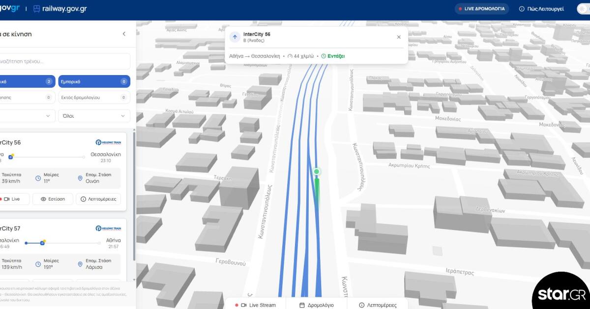 Σε λειτουργία το railway.gov.gr με live εικόνα των τρένων στον χάρτη