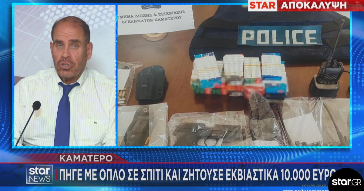 Ο Βαγγέλης Γκούμας έχει το ρεπορτάζ. Όπως είπε ο δημοσιογράφος του Star, ο δράστης πήγε έξω από το σπίτι του θύματος με ένα όπλο και τον απείλησε, ζητώντας του 10.000 ευρώ. Διαφορετικά, θα έκανε κακό τόσο στον ίδιο όσο και σε άλλα μέλη της οικογένειάς του. Όπως ανέφερε, από το θύμα ζητούσε τα χρήματα ως αποζημίωση για την επίθεση που είχαν κάνει στον γιο του μια παρέα με παιδιά.