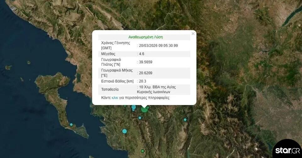 Σεισμός, 4,6 Ρίχτερ σημειώθηκε ξανά το πρώι στα Ιωάννινα αναστατώνοντας τους κατοίκους.