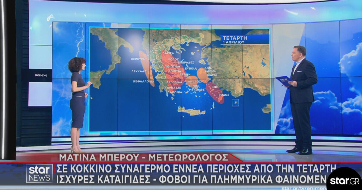 Η μετεωρολόγος του Star Ματίνα Μπέρου προειδοποιεί ότι δύο βαρομετρικά χαμηλά θα επηρεάσουν τη χώρα από το βράδυ της Τρίτης έως και την Πέμπτη, με τα φαινόμενα να ξεκινούν από το Ιόνιο και να επεκτείνονται την Τετάρτη σε όλη την επικράτεια.