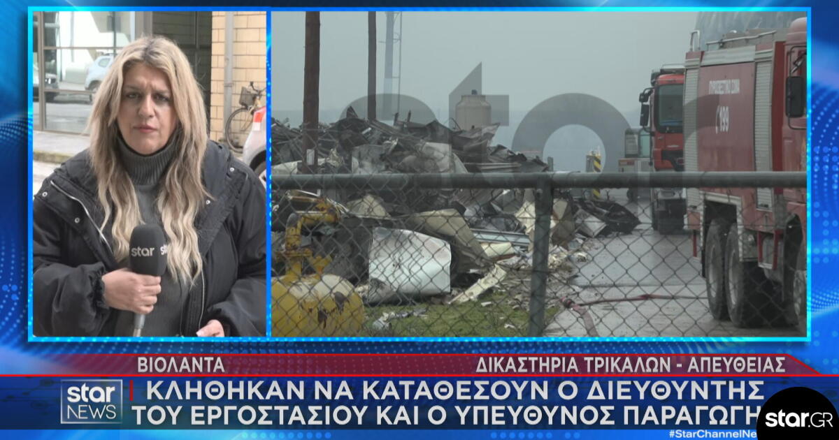Η ανταποκρίτρια του Star Δήμητρα Τζιότζιου, μετέδωσε από το δικαστικό μέγαρο των Τρικάλων τις τελευταίες πληροφορίες στο μεσημβρινό δελτίο με τον Γιώργο Ευγενίδη. Όπως σημείωσε, με διαφορά μίας ώρας οδηγήθηκαν στα δικαστήρια των Τρικάλων ο ιδιοκτήτης του εργοστασίου Βιολάντα που είναι προσωρινά κρατούμενος και οι δύο νέοι κατηγορούμενοι, ο διευθυντής εργοστασίου και ο υπεύθυνος παραγωγής, στους οποίους έχουν ασκηθεί διώξεις για άμεση συνέργεια σε έκρηξη με δόλο, ανθρωποκτονία από αμέλεια κατά συρροή και πρόκληση σωματικών βλαβών κατά συρροή.