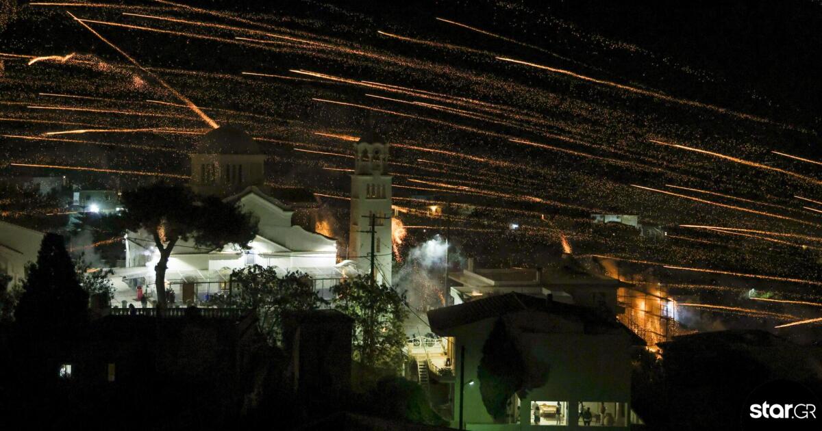 Αυτοσχέδιες ρουκέτες στον Βροντάδου της Χίου, το βράδυ της Ανάστασης του 2025/ ΙΝΤΙΜΕ Αναγνώστου Κων/νος