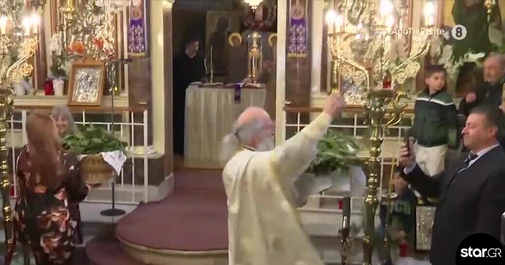 Λίγο μετά τις 08:30 το πρωί όταν ακούστηκε το «Ανάστα ο Θεός», ο πατήρ Χριστόφορος Γουρλής πετάχτηκε μέσα από το ιερό με το χαρακτηριστικό του σάλτο και άρχισε να τρέχει μέσα στον ναό ραίνοντας με δάφνες τους πιστούς.