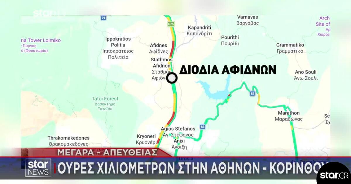 Σύμφωνα με τις πληροφορίες, στο τμήμα από τον Ισθμό της Κορίνθου έως τα Μέγαρα σχηματίστηκε ουρά περίπου 30–32 χιλιομέτρων, με τα οχήματα να κινούνται σημειωτόν για ώρες. Η κίνηση παραμένει ιδιαίτερα αυξημένη, ενώ η κατάσταση επιβαρύνεται όσο περνά η ώρα.