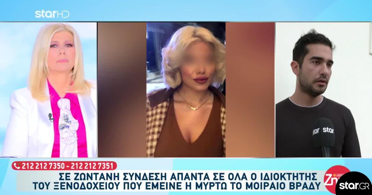 Ο ίδιος έχει κληθεί να καταθέσει αύριο στην ανακρίτρια και όπως ξεκαθάρισε θα απαντήσει σε όλες τις ερωτήσεις της και για το πόσοι ήταν οι ένοικοι στο κατάλυμά του το μοιραίο βράδυ και ποιος έκανε την κράτηση και όσα ξέρει για τη Μυρτώ και τι έγινε στο δωμάτιο που νοίκιασε.