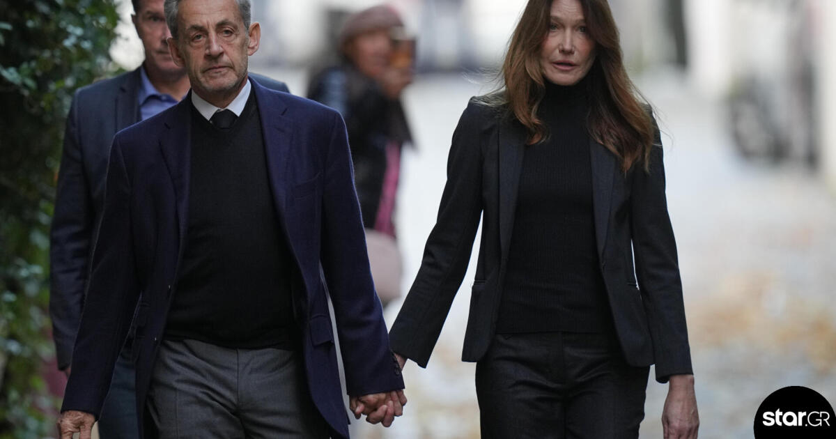 Ο Νικολά Σαρκοζί, πρώην πρόεδρος της Γαλλίας, κρατώντας από το χέρι τη σύζυγό του Κάρλα Μπρούνι, περπάτησε στο δρομάκι του σπιτιού τους την Τρίτη, πριν παραδοθεί για να οδηγηθεί στη φυλακή.